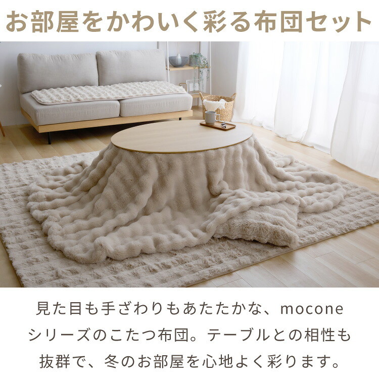 楕円形こたつ 105×70 もこもここたつ布団 mocone こたつ布団セット こたつテーブル 円形 センターテーブル 丸型 モコネ ホワイト ナチュラル