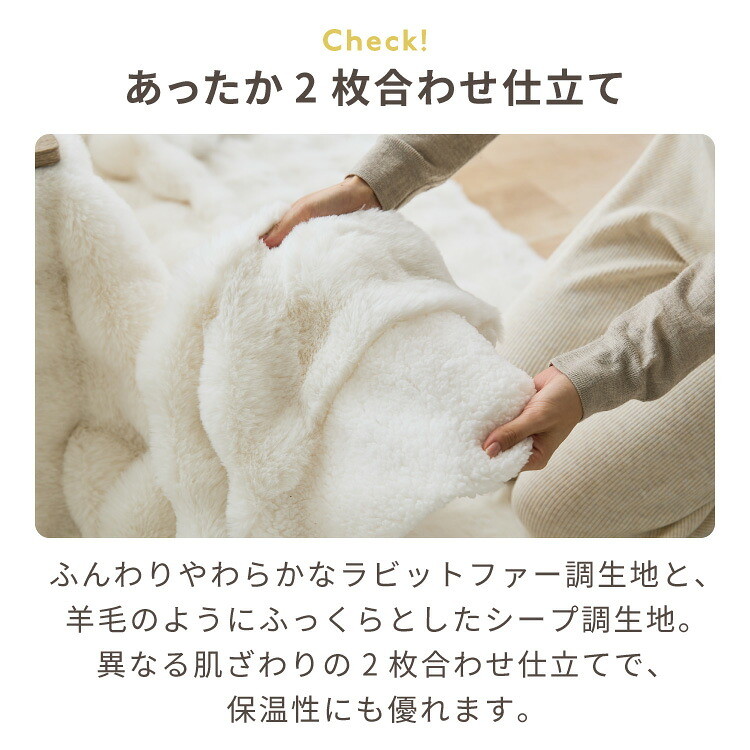・こたつ布団はラビットファーの長毛を使用。肌触りが良くずっと触ってられます。