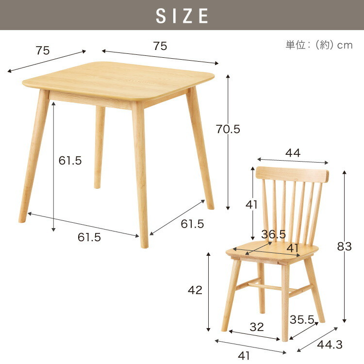 カフェ風 ダイニング3点セット 2人掛け 75×75cm ダイニングチェア ウィンザーチェア 天然木 オーク突板 ナチュラル