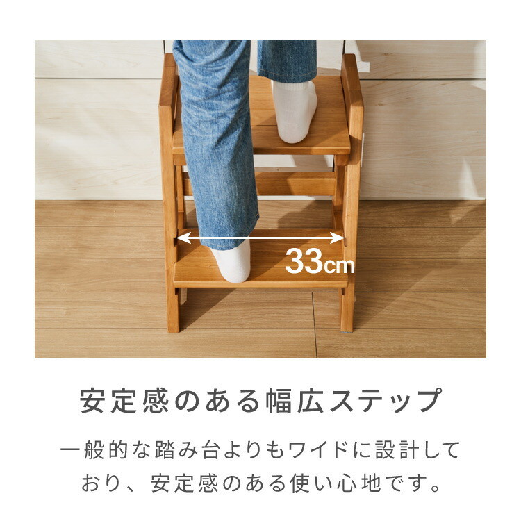 天然木 高さ調整踏み台 2段 幅38cm ステップ&スツール 6段階 ステップ台 ステップ スツール ふみ台 グレー