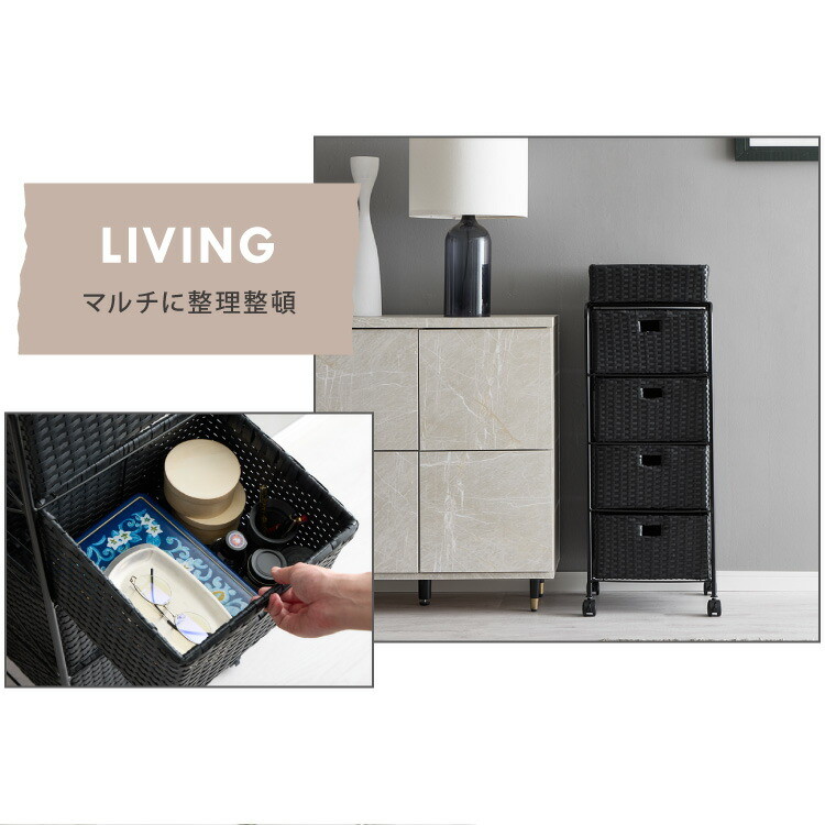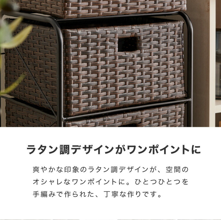 キャスター付きラタン調サニタリー収納 幅35cm スリム 引き出し サニタリーチェスト サニタリー すき間 チェスト ブラック