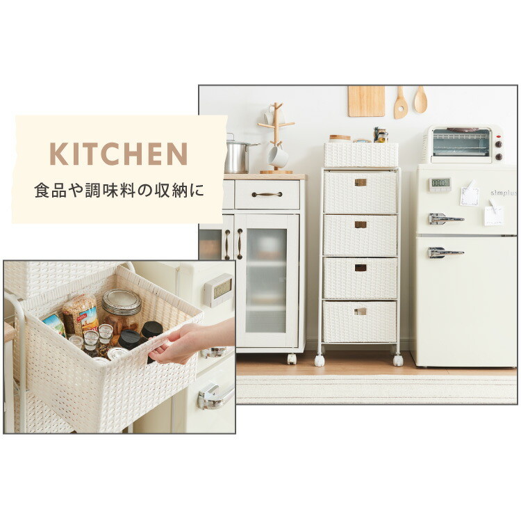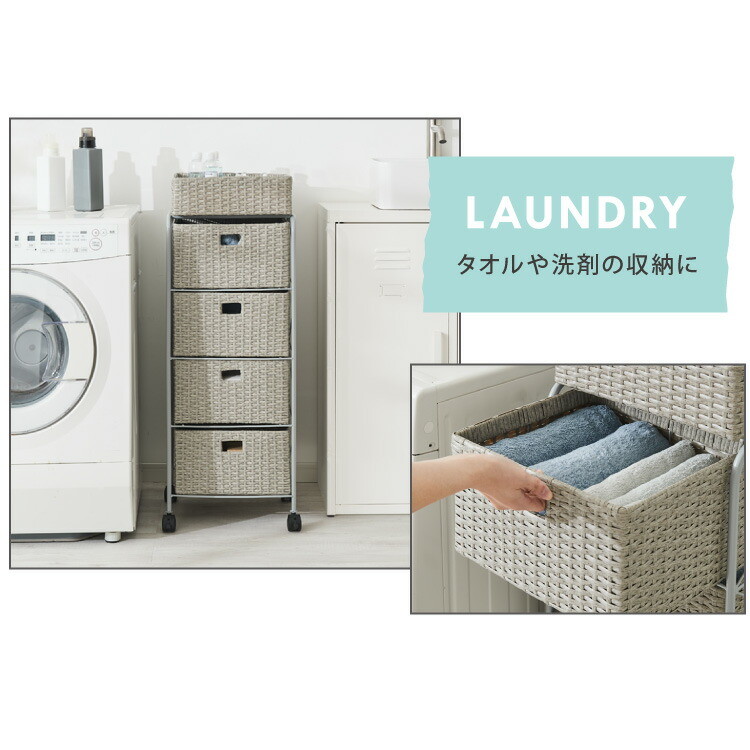 キャスター付きラタン調サニタリー収納 幅35cm