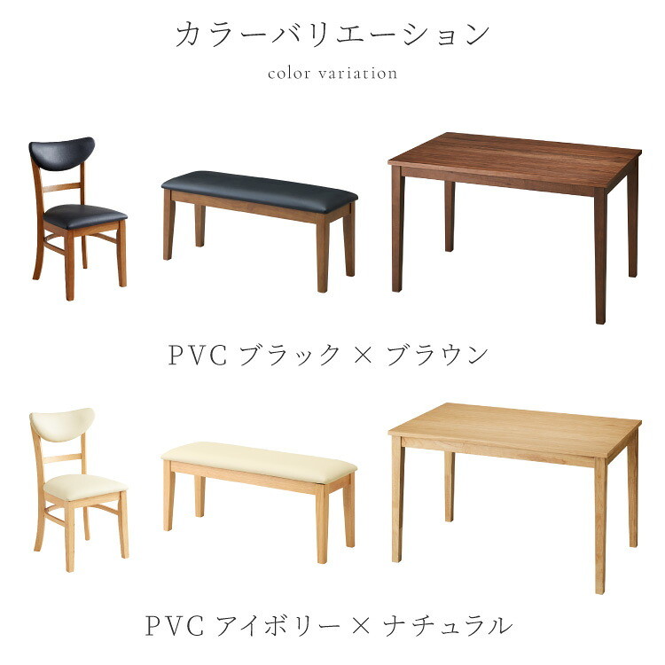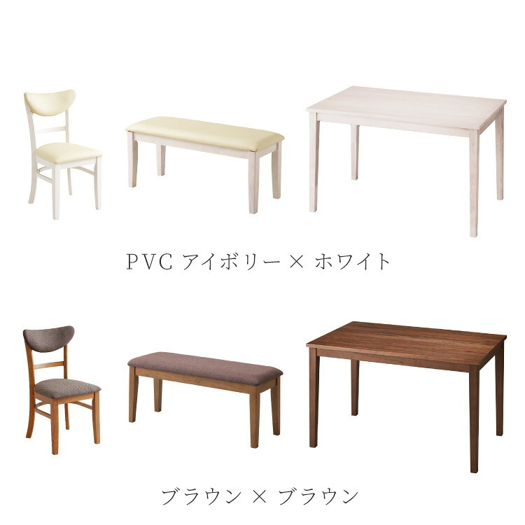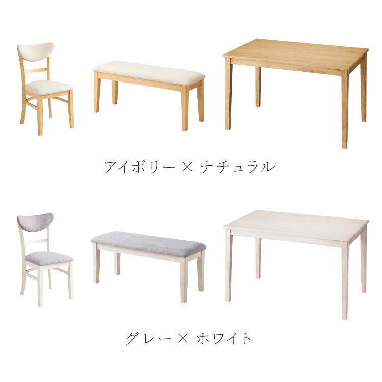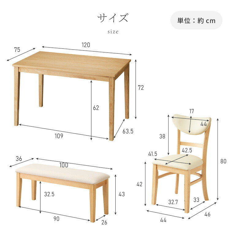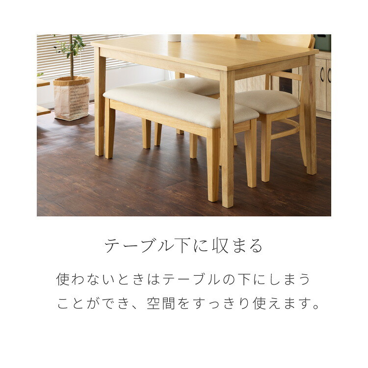 ・120cmテーブルとベンチ、ダイニングチェア「セナ」の4点セットです。