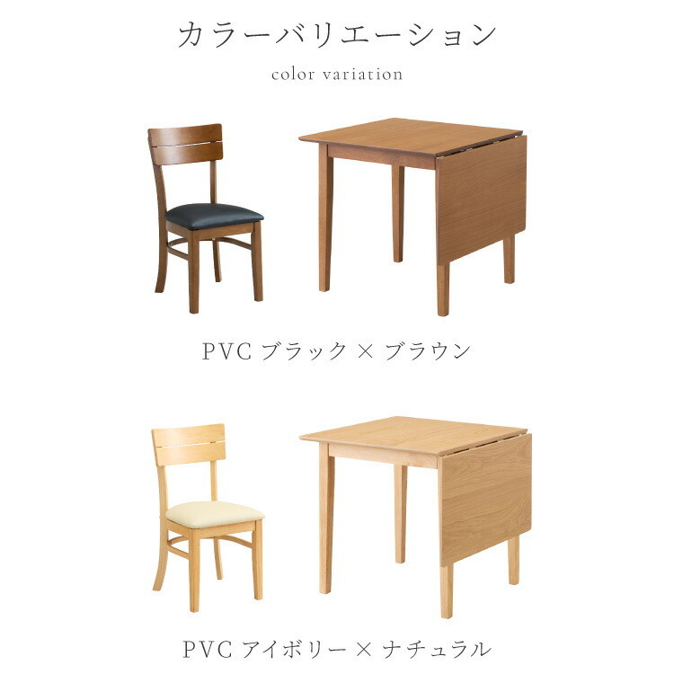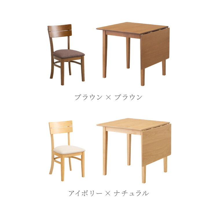 伸縮ダイニングテーブル 3点セット 75cm 120cm 天然木 2人掛け 4人掛け ダイニングチェア ミック バタフライテーブル 折りたたみ ブラウン×ブラウン