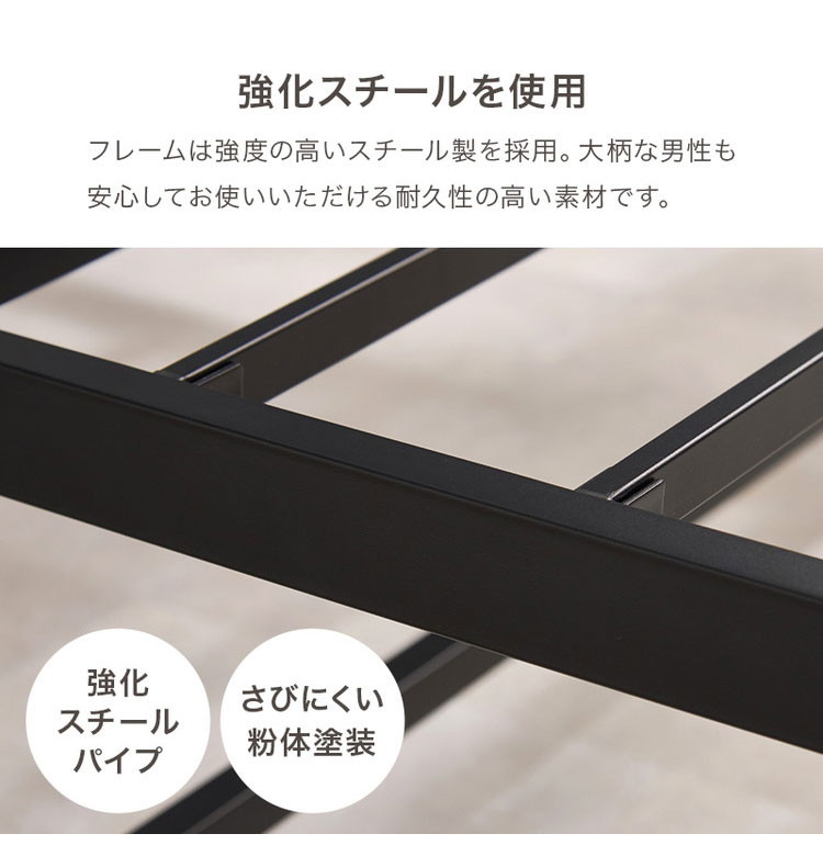 耐荷重300kg 頑丈スチールベッド シングル 棚コンセント付き ヘッドボード付き ベッドフレーム スチールベッド ダークブラウン