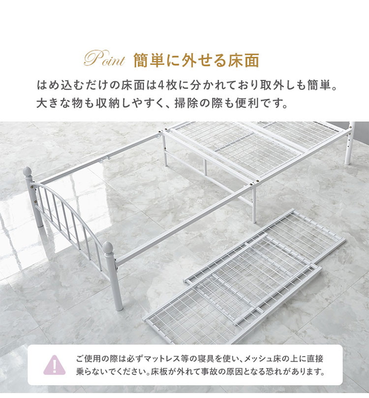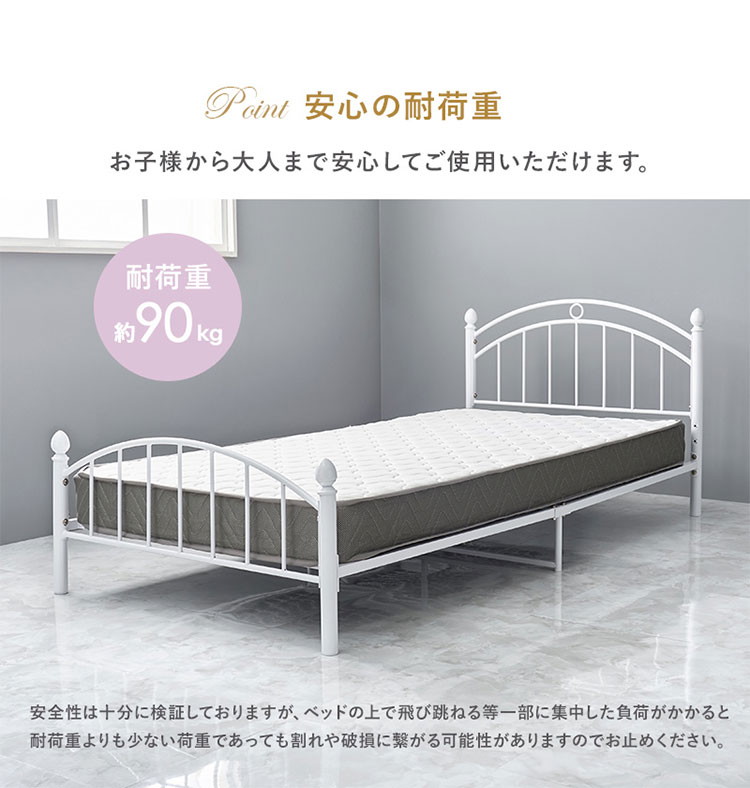 姫系 スチールベッド シングル ボンネルコイルマットレス付き 2点セット ホワイト 白 エレガント ベッド 高さ調節