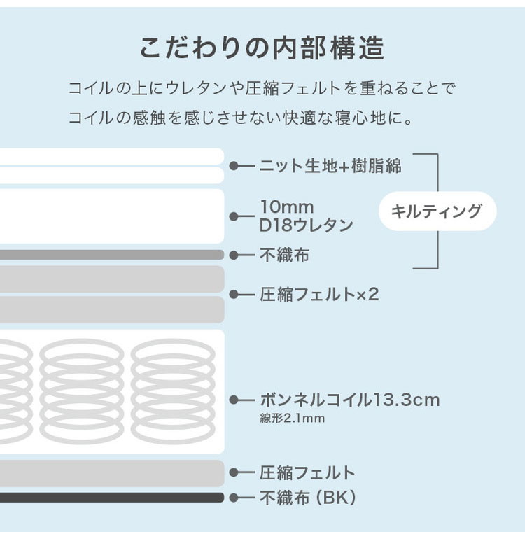 主材:ボンネルコイル、張地:ポリエステル