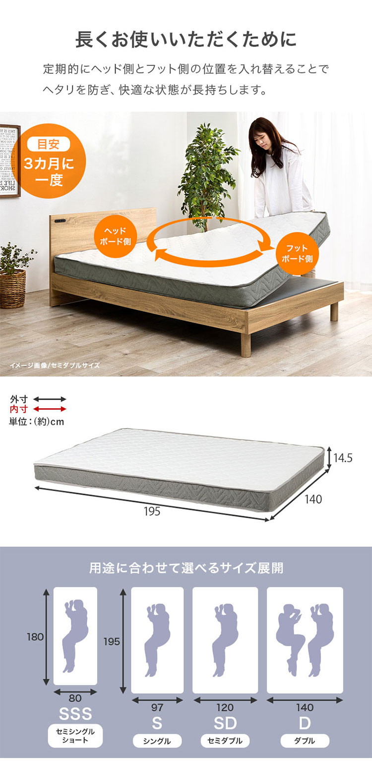 ボンネルコイルマットレス D ダブル 幅140cm 厚み14.5cm マットレス ボンネルコイル マット 敷布団 寝具