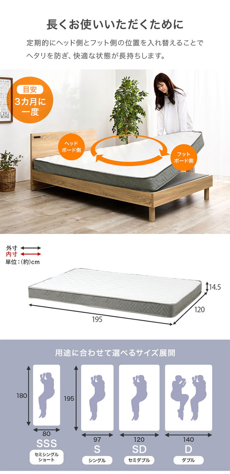 ボンネルコイルマットレス SD セミダブル 幅120cm 厚み14.5cm マットレス ボンネルコイル マット 敷布団