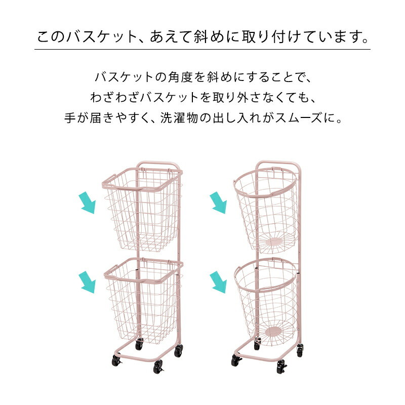 格子デザインのバスケットは通気性に優れており、ホコリもためにくい構造なので、清潔に保ちやすくなっています。