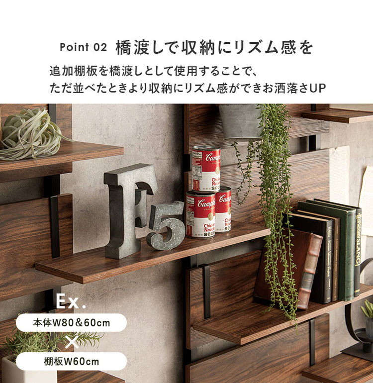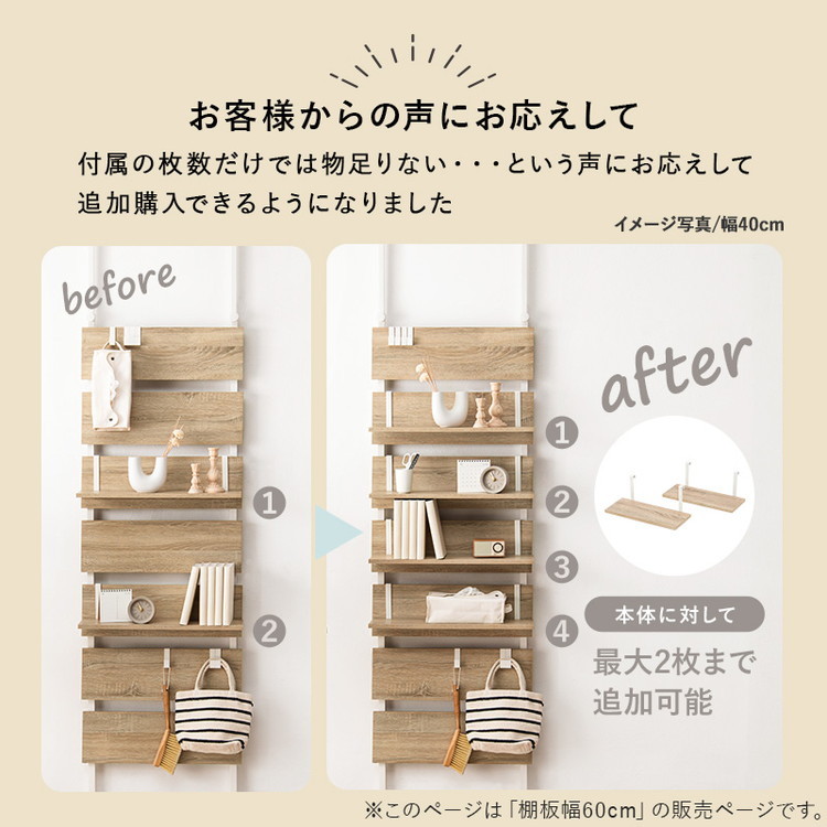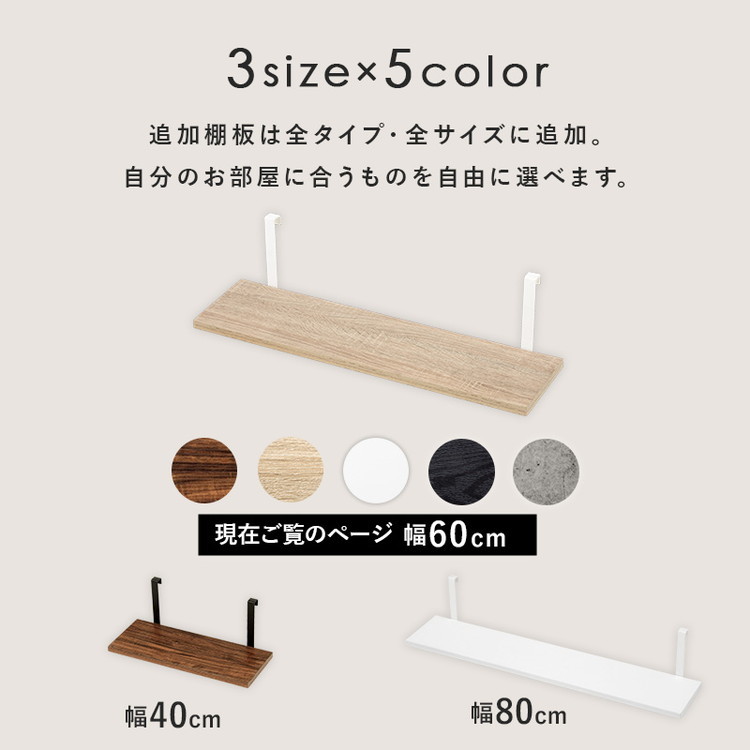 突っ張りウォールラック専用 追加棚板 2枚セット 幅60 追加オプション ウォールシェルフ ウォールラック 壁 ブラウン×ブラック