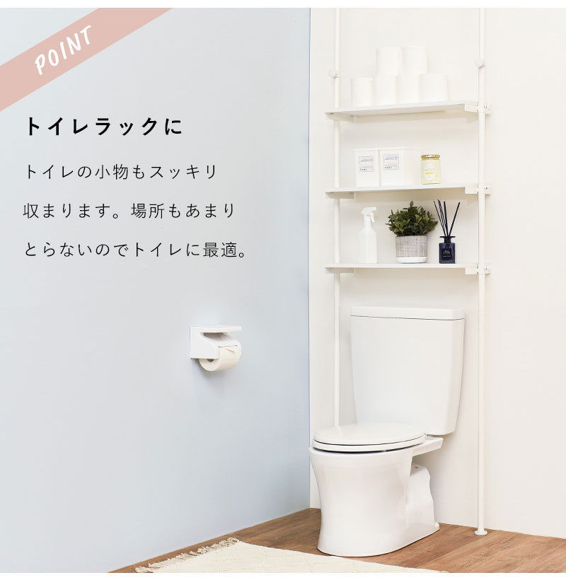 つっぱり 洗濯機ラック 幅70 突っ張り棚 ランドリーラック 収納 木目 突っ張り棒 棚 伸縮 調節 ナチュラル/ホワイト