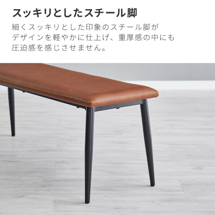 ダイニングベンチ 幅110 ヴィンテージ調 ベンチ 椅子 チェア ダイニングベンチ単品 PVCレザー 合成皮革 スチール脚 モダン ブラック