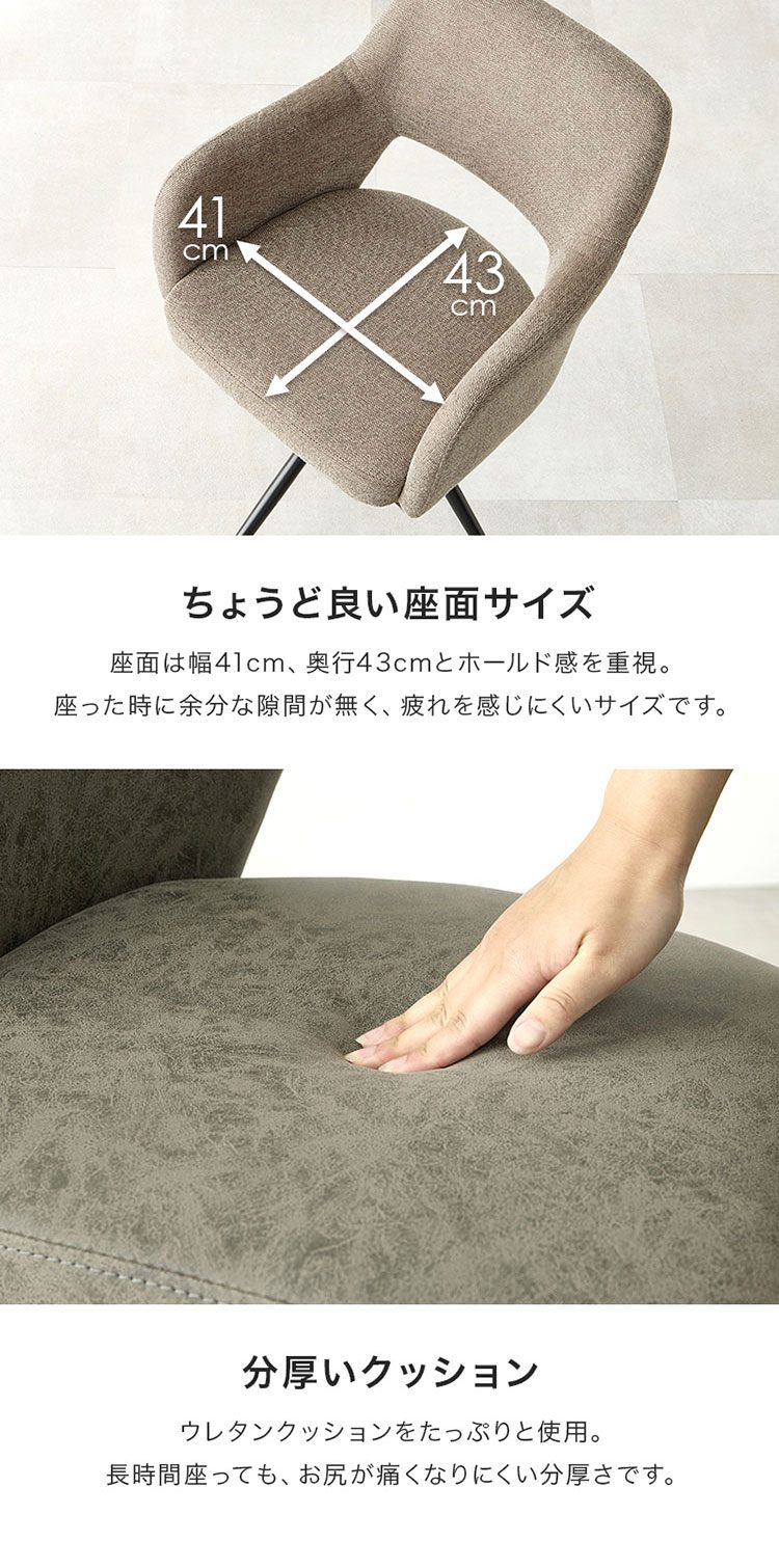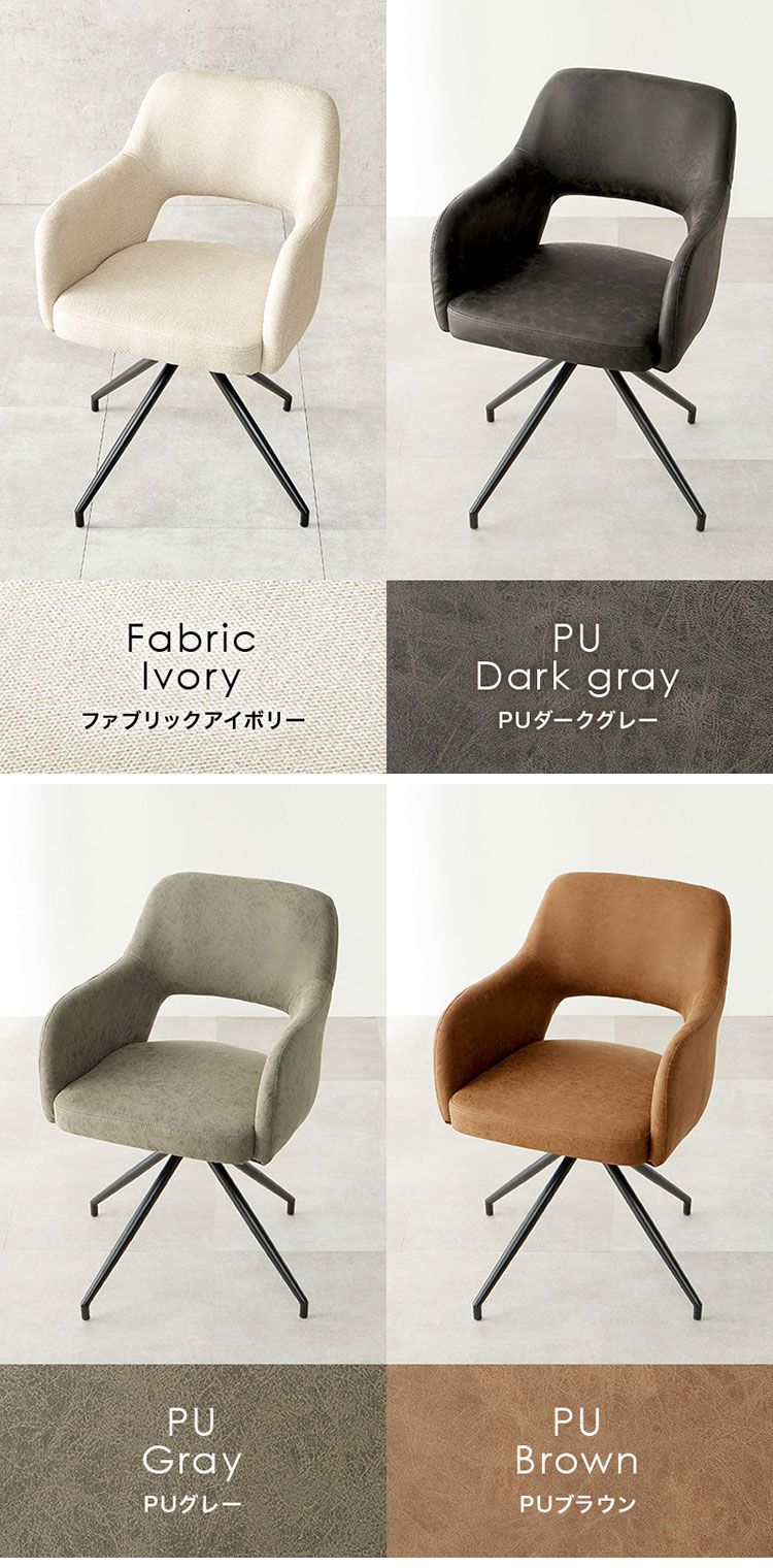ヴィンテージ調 回転 ダイニングチェア 肘付き 選べる2タイプ ファブリック レザー調 イス 椅子 チェア 回転式 回転ダイニングチェア ファブリックダークグレー