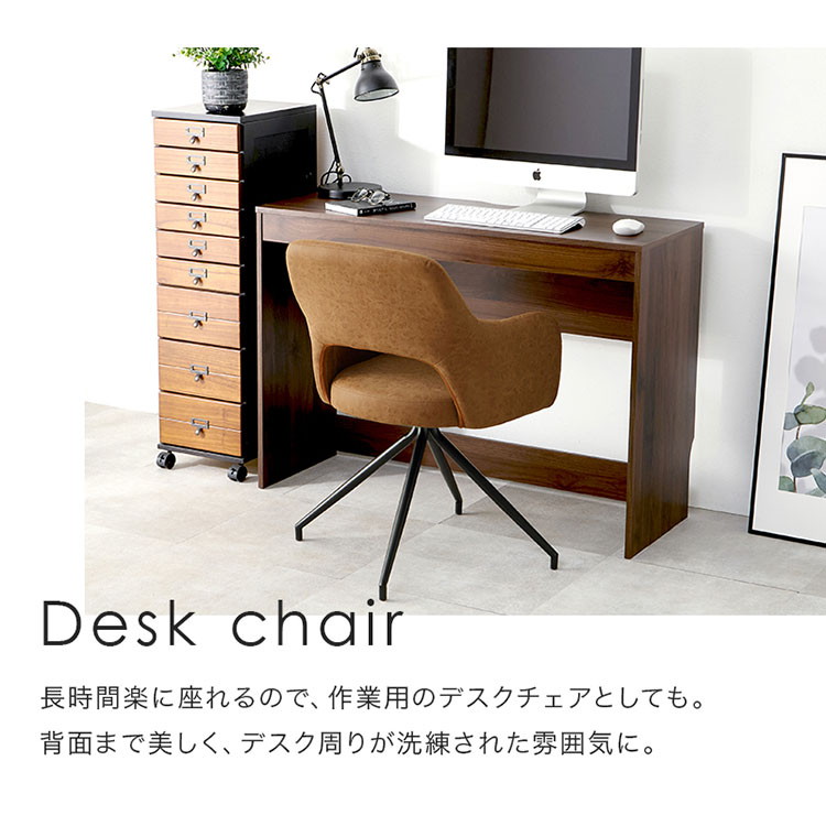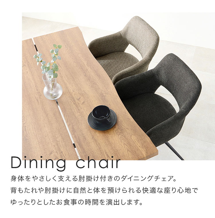 肘掛けが一体となった曲線が生み出すシルエットはダイニングやデスクなど多彩なシーンにフィットします。立ち座りがスムーズな回転チェアです。