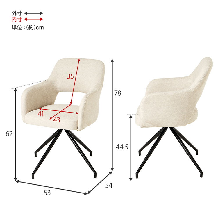 (約)幅53×奥行54×高さ78×座面高44.5cm