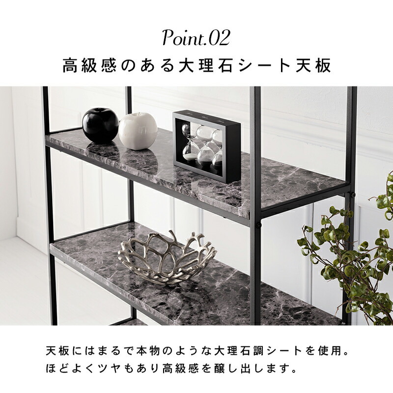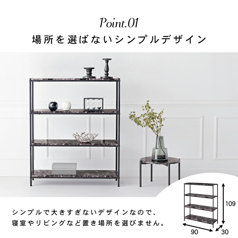 オープンラック 大理石調 4段 幅90 ディスプレイラック スチール シェルフ 飾り棚 収納ラック 本棚 セラミック柄 ホワイト