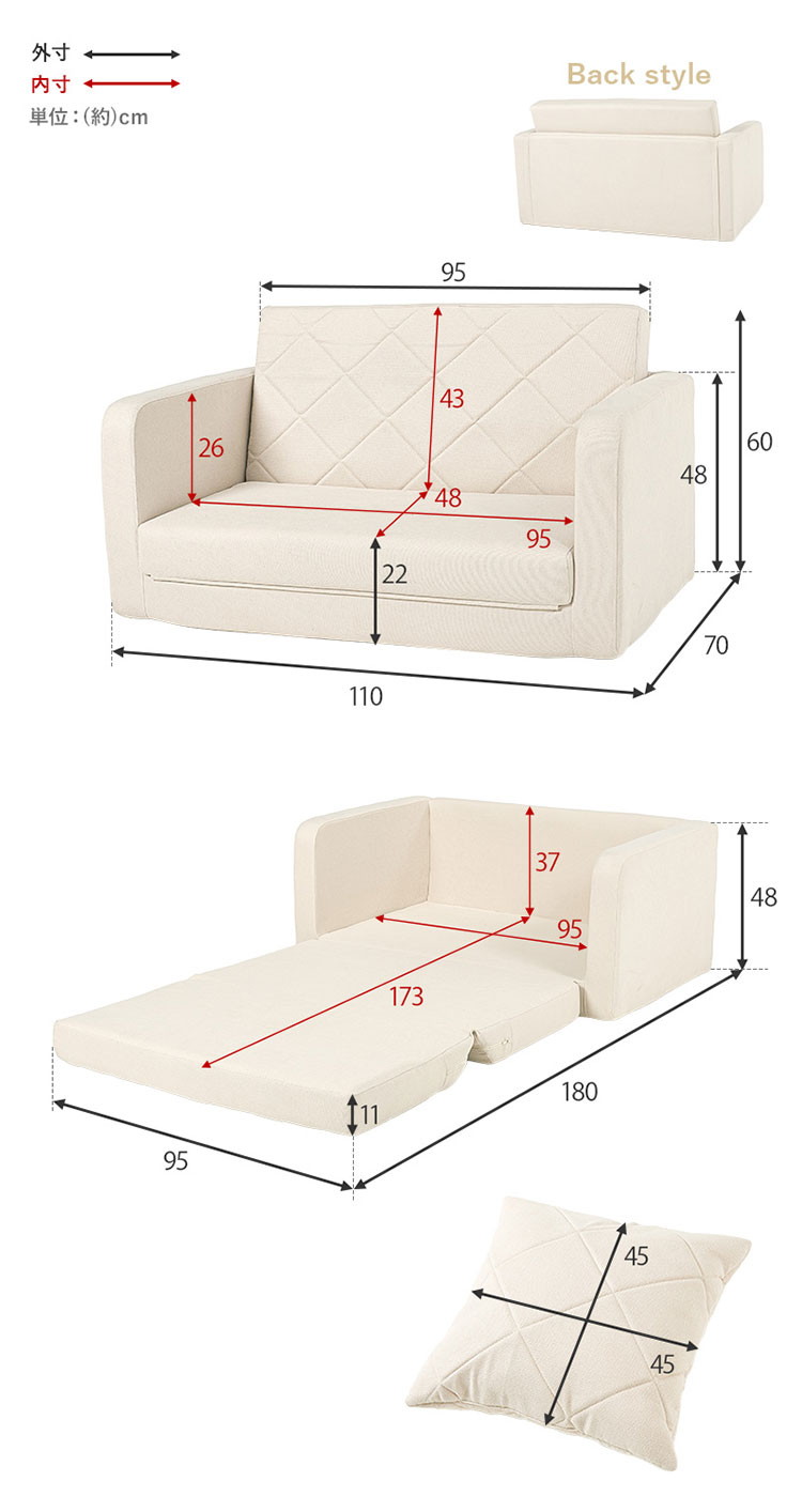 (約)幅110×奥行70/180×高さ60/48×座面高22/11cm