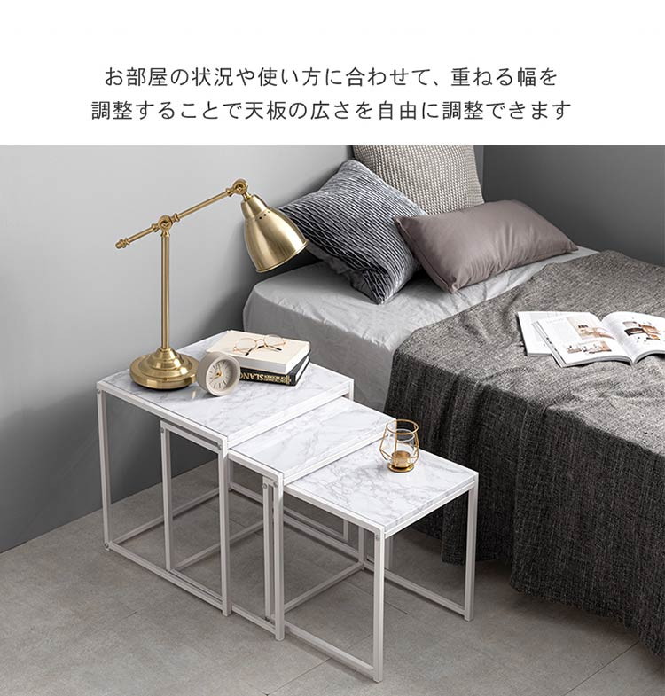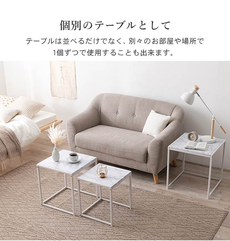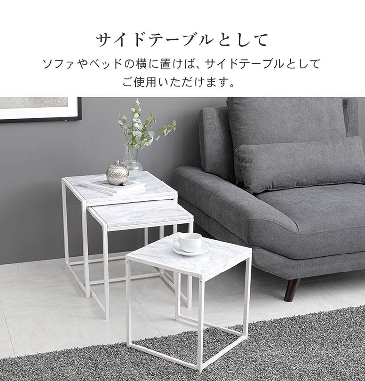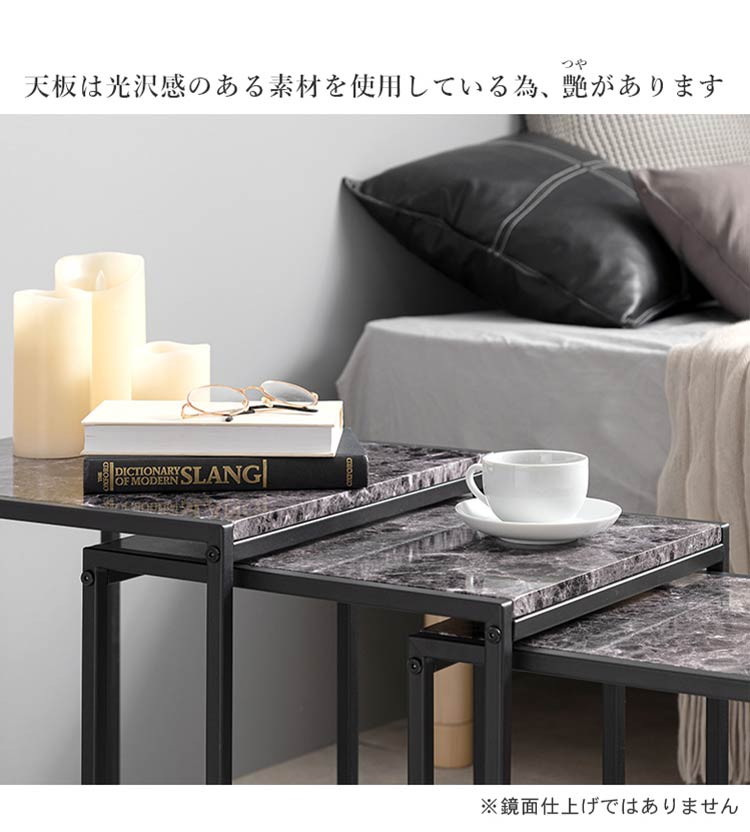 モダンな雰囲気の大理石調天板を使用したネストテーブル、角型3個セットです。