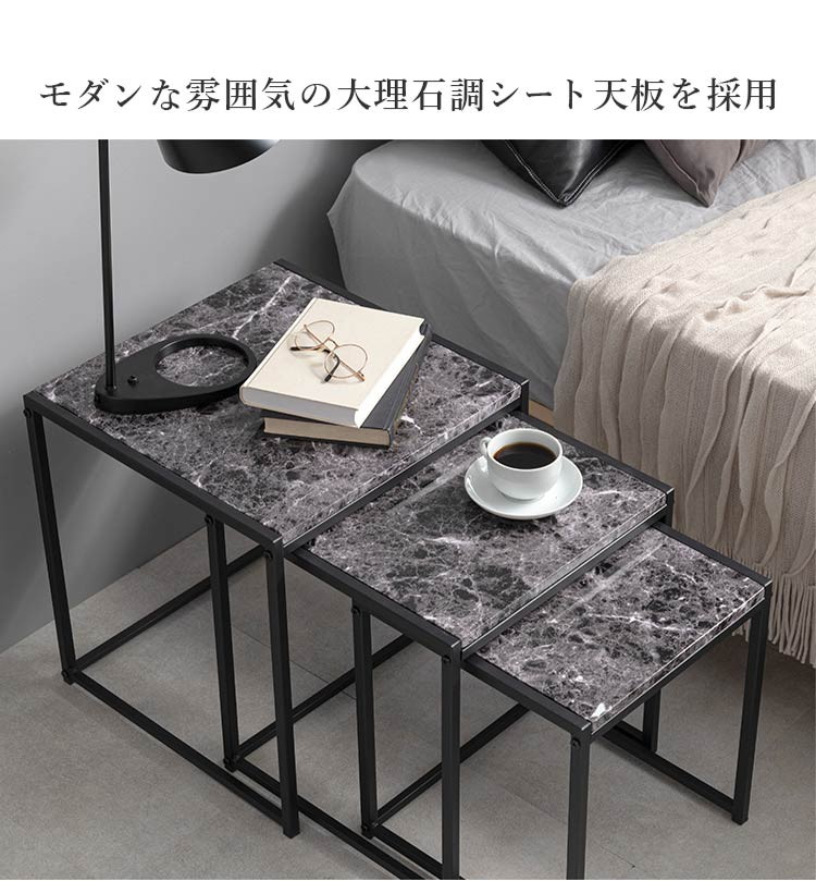 ネストテーブル 大理石調 3個セット テーブル ローテーブル サイドテーブル コンパクト マーブル調 コーヒーテーブル リビングテーブル 韓国インテリア マーブルブラック