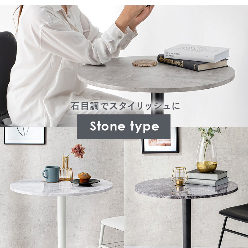 カフェテーブル 大理石調 セラミック柄 丸 60×60 コーヒーテーブル サイドテーブル モノトーン モダン 白 黒 マーブル調 丸型/ライトブラウン