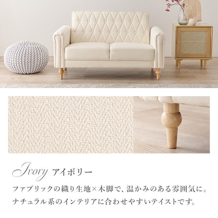 ソファ デザインソファ 二人用 二人掛け 肘あり コンパクト エレガント ナチュラル 2P フロアソファ 一人暮らし アイボリー