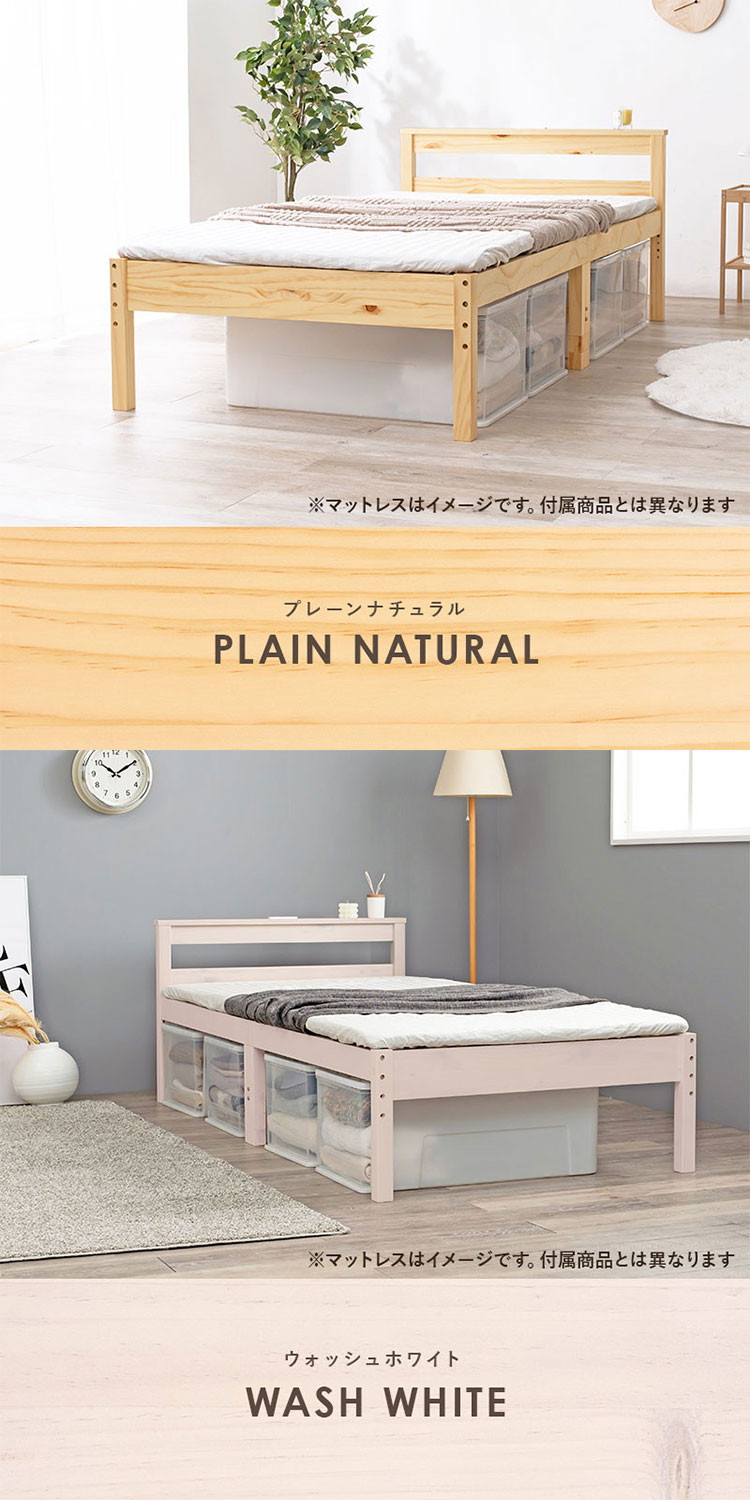 ベッドフレーム:天然木(パイン)、マットレス張地:ポリエステル、マットレス中材:ボンネルコイル使用