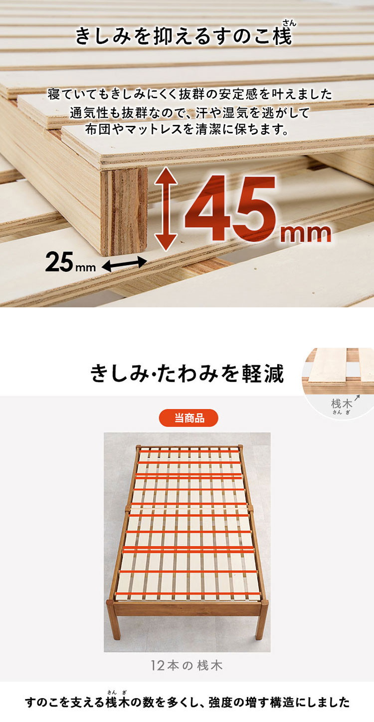 ネジなし、工具不要で簡単組立。シンプルなデザインのシングルベッド。しっかりとした寝心地のボンネルコイルマットレスセット