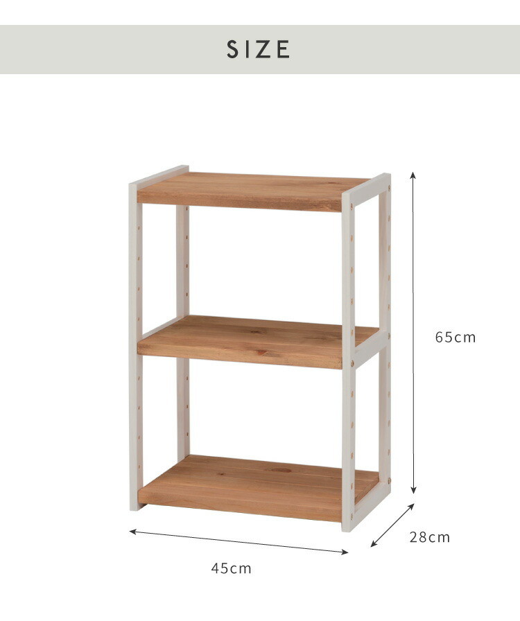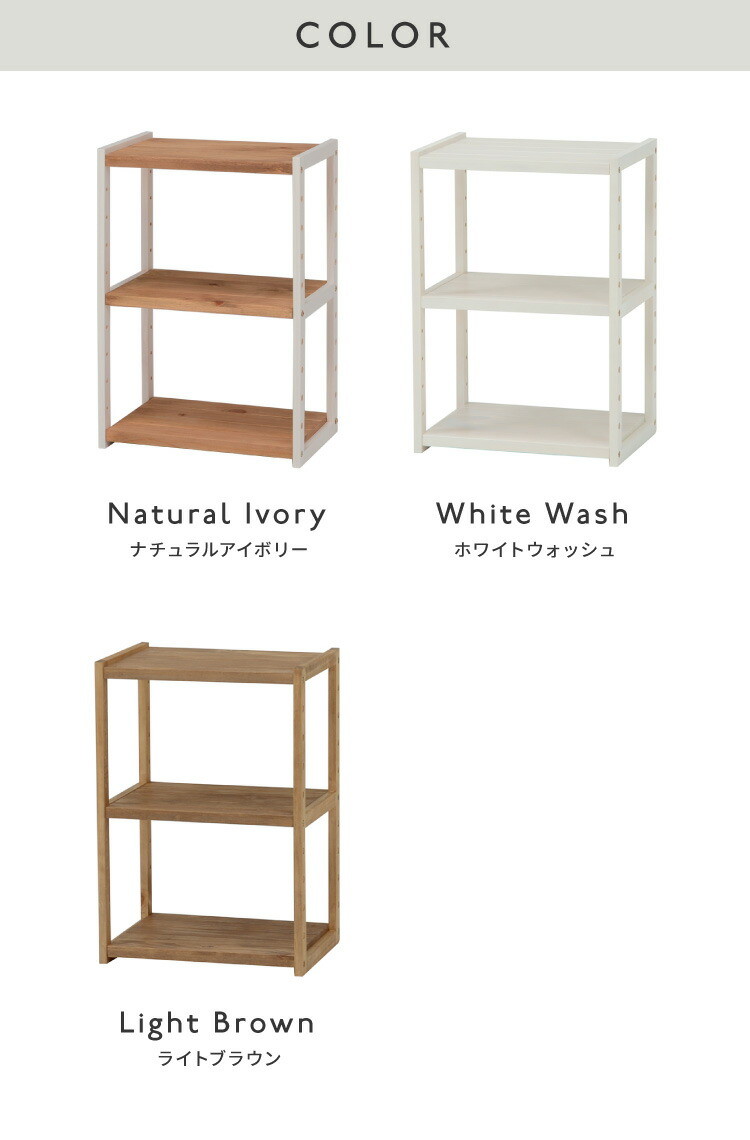 ラック オープンラック 3段 幅45cm 天然木 シェルフ 本棚 収納 ディスプレイ フリーラック カントリー調 ナチュラルアイボリー