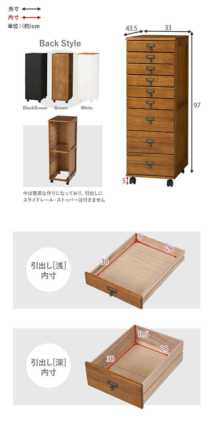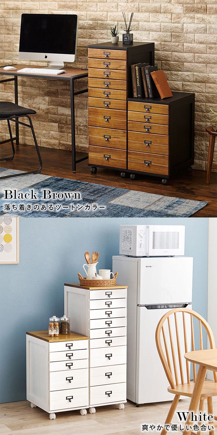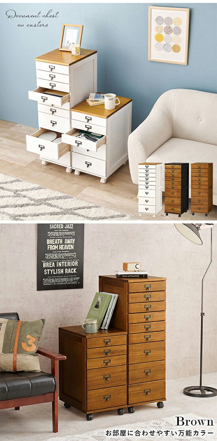 B4サイズ収納 書類チェスト 9段 キャスター付き 多段チェスト 幅33 書類収納 引き出し 引出し ワゴン ブラックブラウン