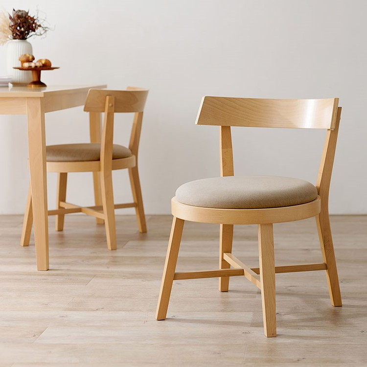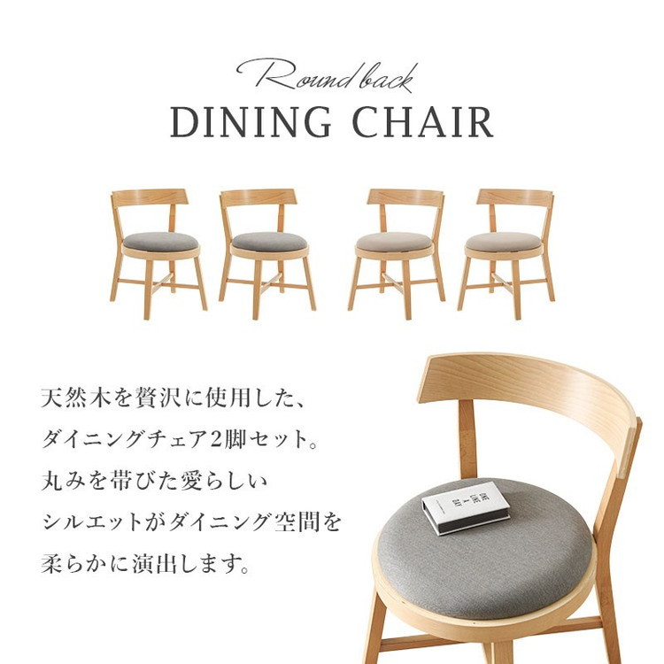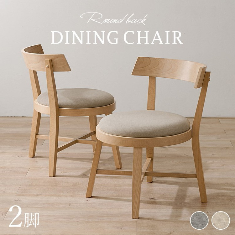 ダイニングチェア 2脚セット 背もたれ ラウンド デザインチェア 天然木 ピーチ材 天然木 ファブリック 北欧 イス ベージュ
