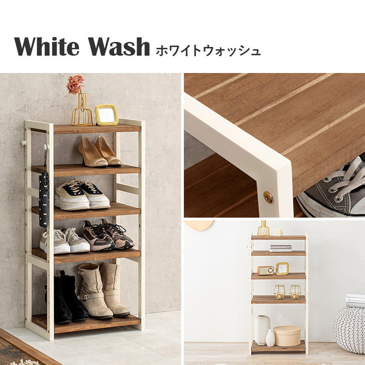 サンダルからブーツまで、靴の高さに合わせて棚の高さを組み換えできるシューズラック。靴が見やすく取り出しやすいオープンタイプ。