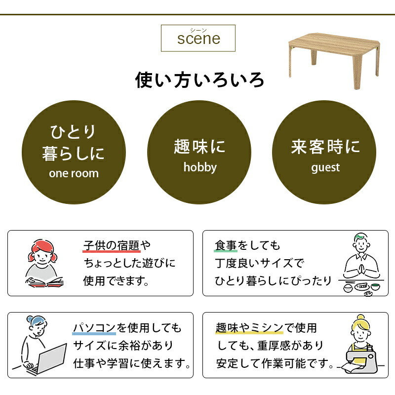 一人暮らしに、趣味の作業台に、ミシン台に、来客時に、使い方いろいろ。