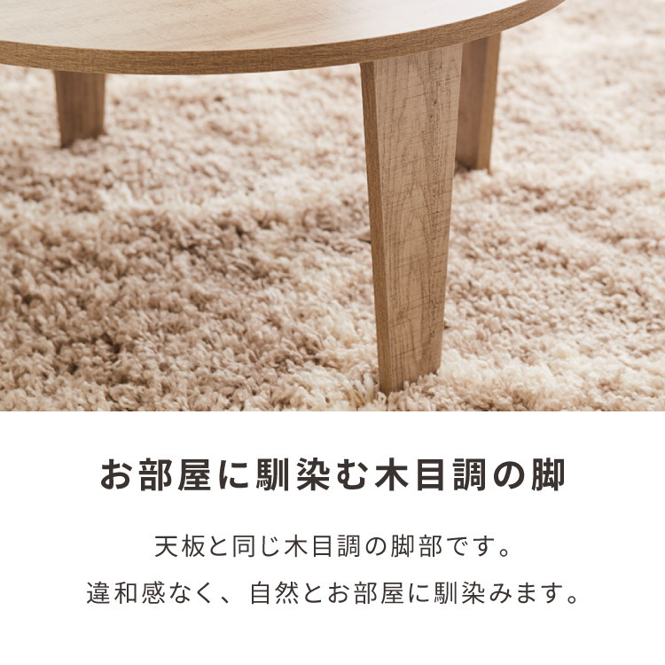 円形の天板にスタイリッシュな脚を組み合わせた、可愛いデザインのローテーブル。