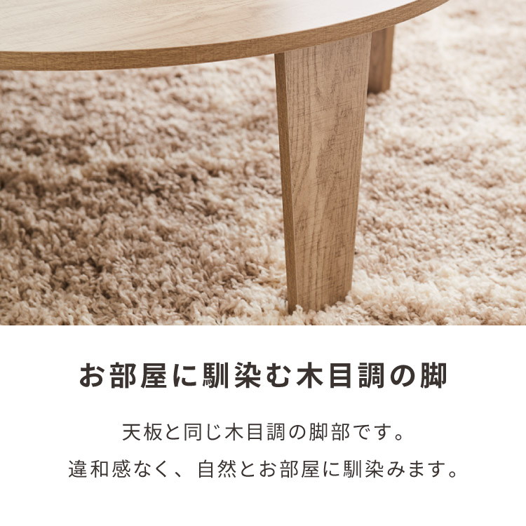 PC作業などにも余裕のある円形ローテーブル。来客時の食事にもちょうど良いサイズです。