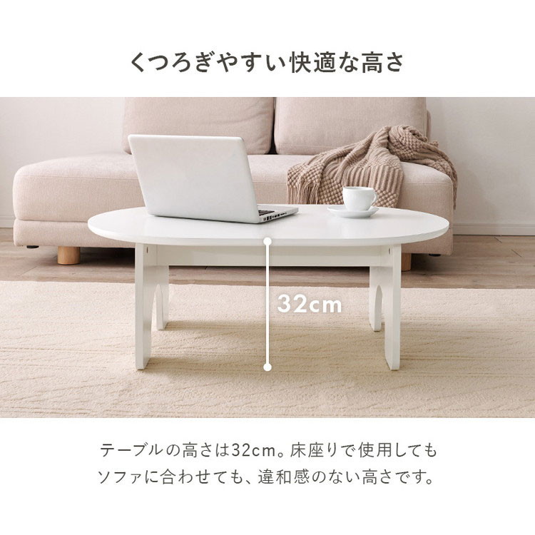 オーバル型 センターテーブル 90×60cm 白 ホワイト ローテーブル 円形 楕円 デスク ソファーテーブル コーヒーテーブル 机