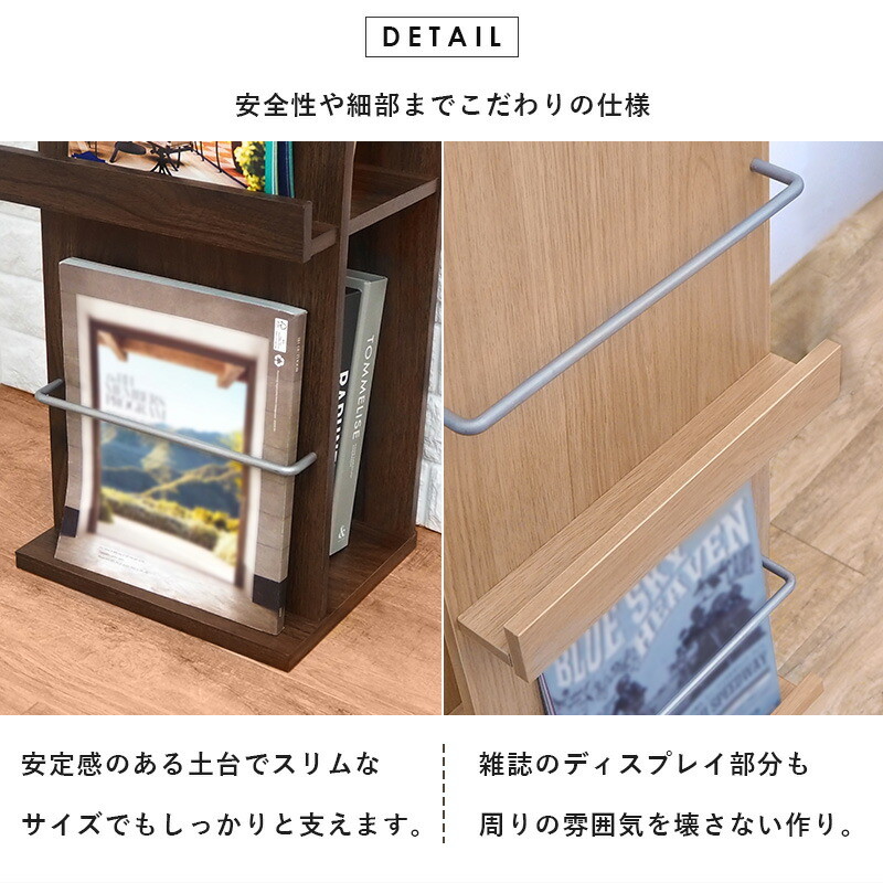 シェルフ マガジンラック スリム 幅30cm 奥行25cm 高さ108cm 本棚 ディスプレイラック 魅せる収納 ブラウン