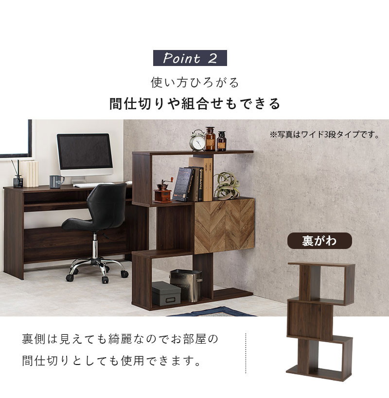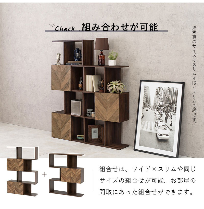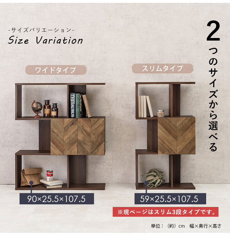 扉付きオープンラック 幅59cm 3段タイプ スリム ディスプレイラック 本棚 シェルフ S字ラック 間仕切り