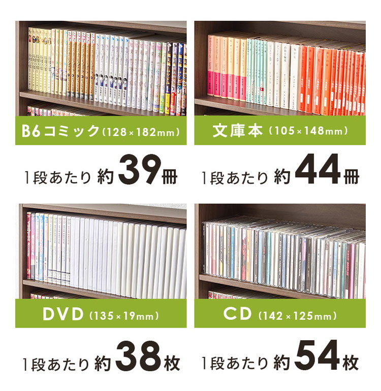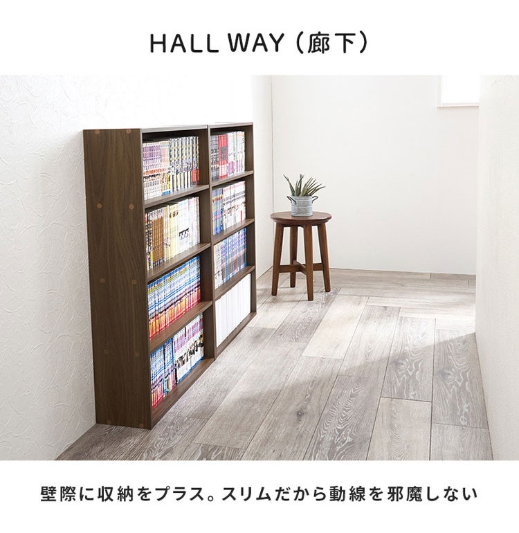 奥行スリムな省スペース設計。1列収納なので本が探しやすく、取り出しやすいコミックラックです。