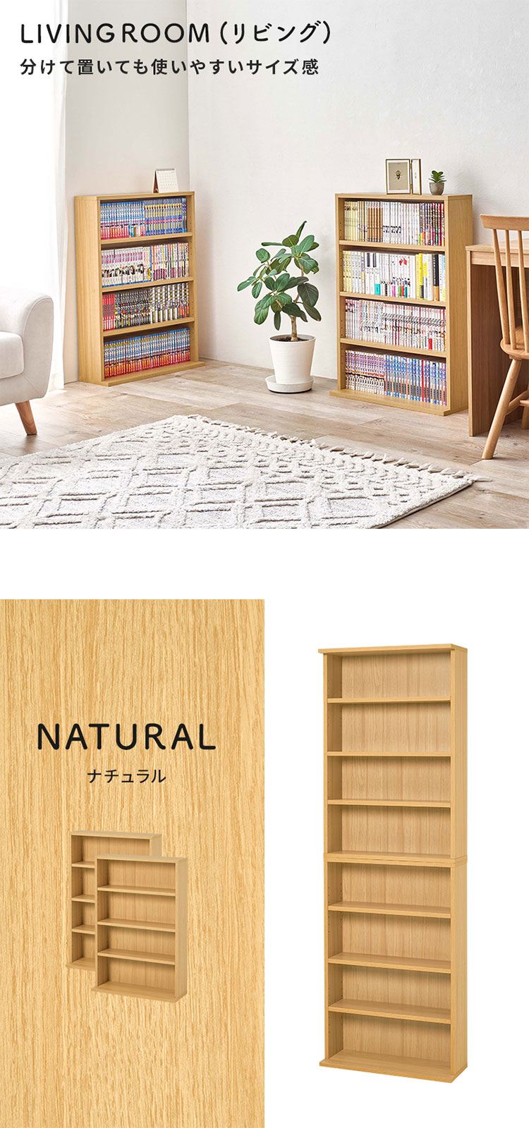 2台セットなので、重ねたり並べたり置き方をアレンジできるブックラック。お部屋に圧迫感を与えにくい薄型設計です