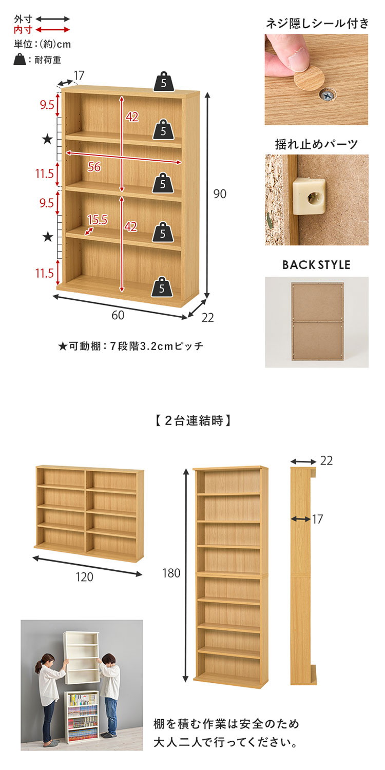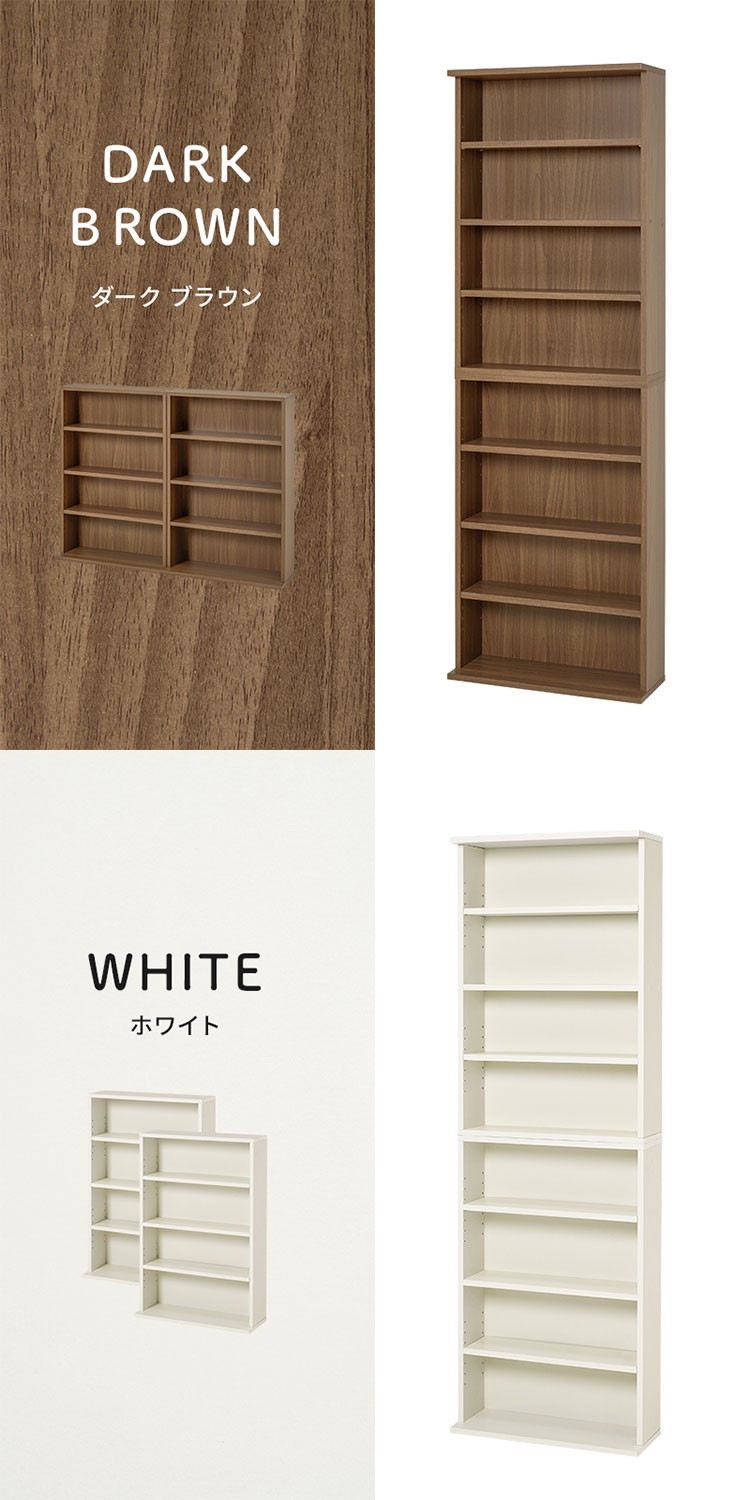2台セット 本棚 幅60cm 薄型 スリム 奥行22cm ブックラック 縦積みOK 可動棚 シェルフ 棚 ラック ダークブラウン