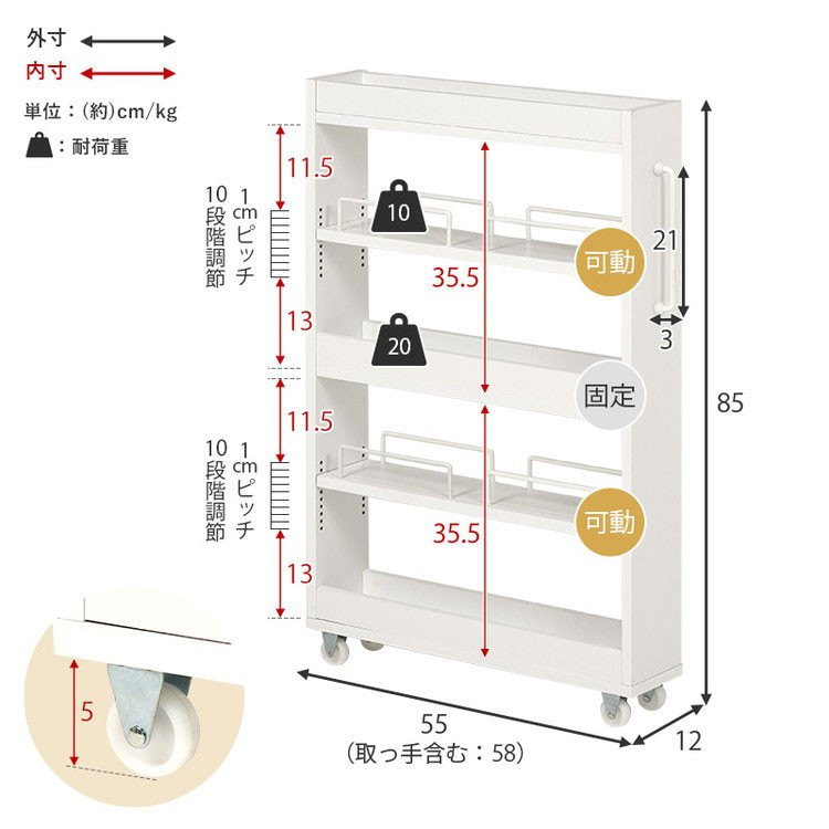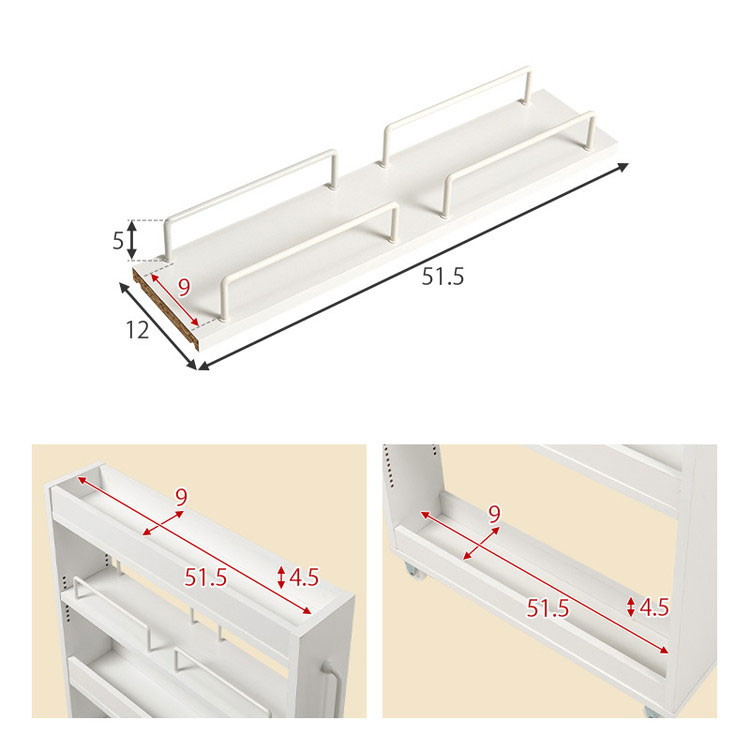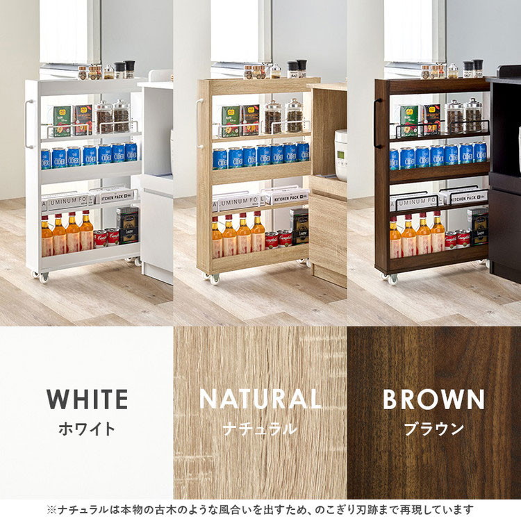 すき間にピッタリ! スペパ 隙間収納ワゴン 幅12cm ロータイプ 高さ85cm すき間収納 隙間収納 キッチンワゴン ナチュラル