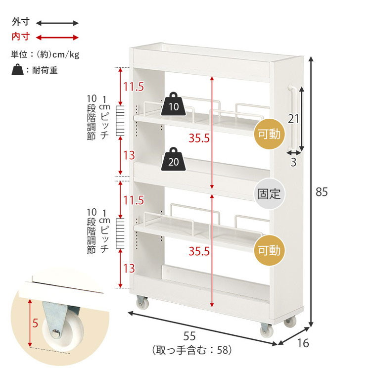 (約)幅16×奥行55(取手含む:58)×高さ85cm