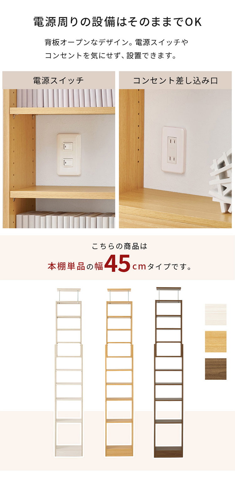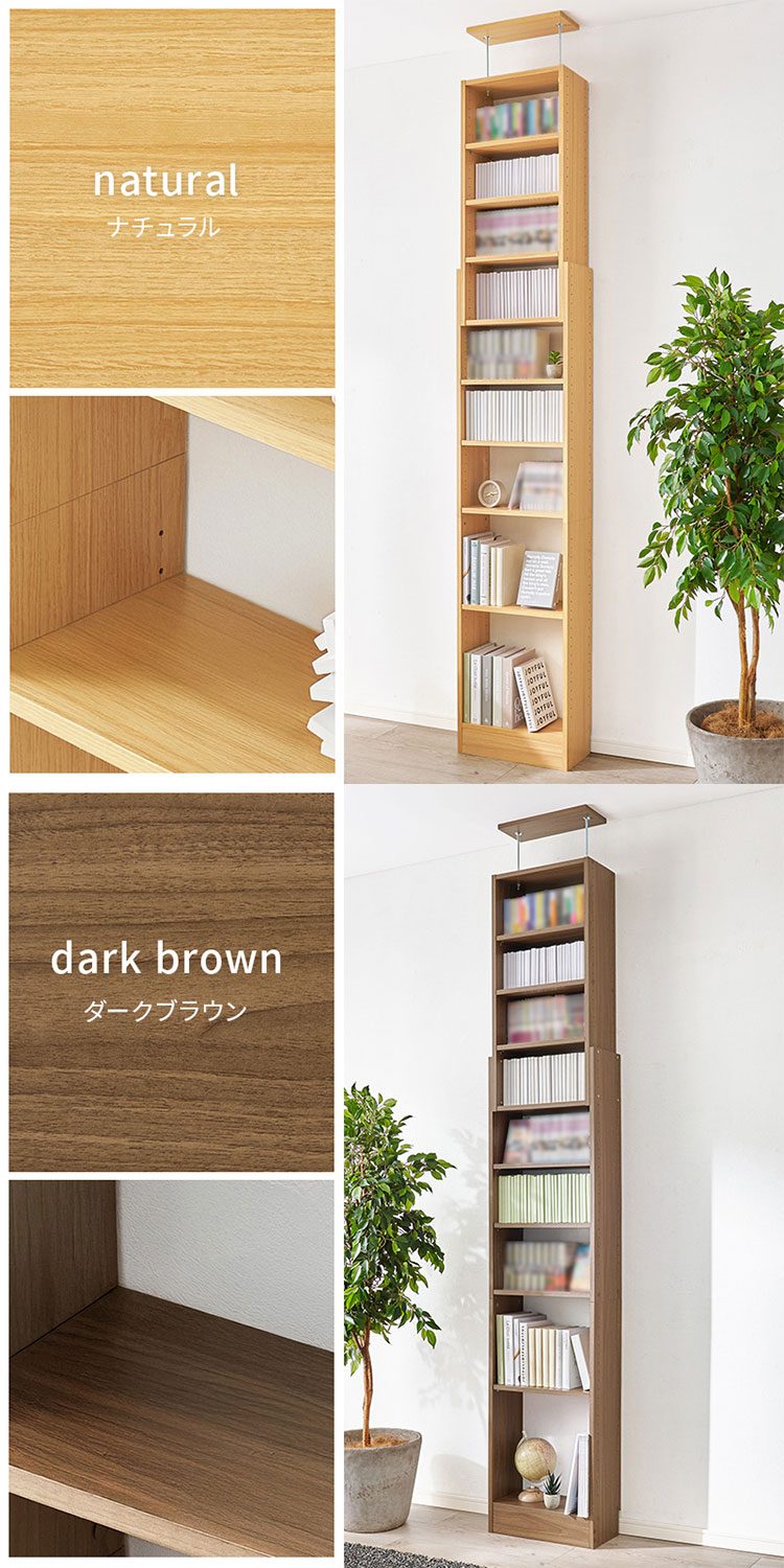 突っ張り式 本棚 大容量 幅45cm 賃貸OK 穴あけ不要 安心 つっぱり 突っ張り 壁面収納ラック シェルフ 棚 ダークブラウン