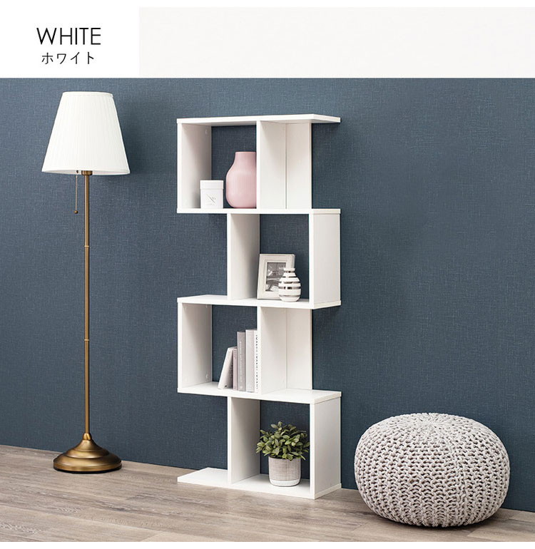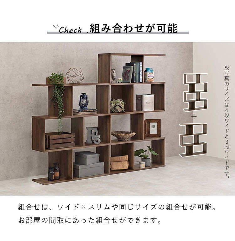 S字 ディスプレイラック 4段 幅62cm オープンラック S字ラック 本棚 シェルフ 収納 棚 間仕切り A4対応 ブラウン