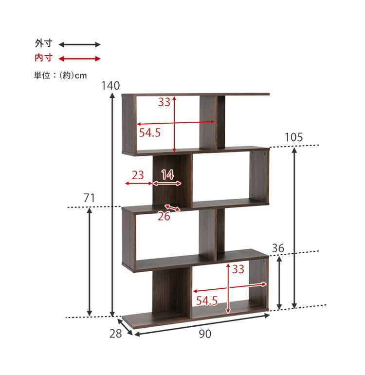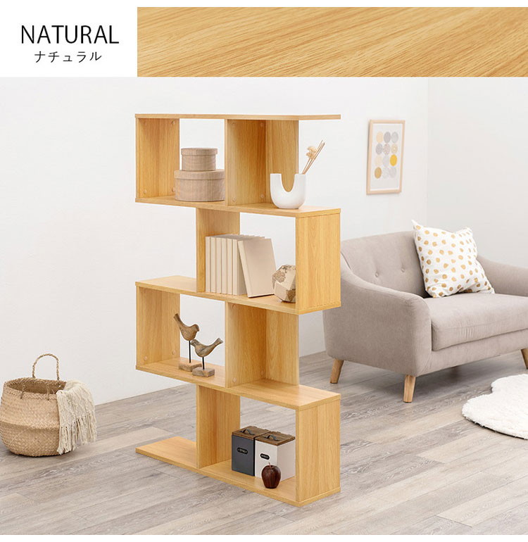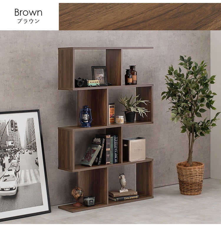S字 ディスプレイラック 4段 幅90cm オープンラック S字ラック 本棚 シェルフ 収納 棚 間仕切り A4対応 ブラウン