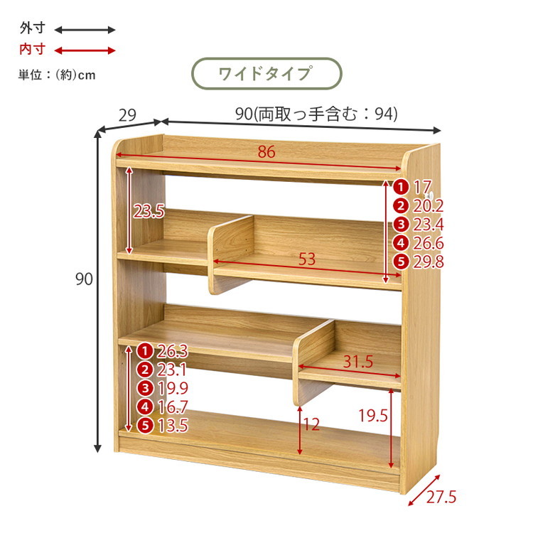 ■ワイド:(約)幅90(両取っ手含む:94)×奥行29×高さ90cm