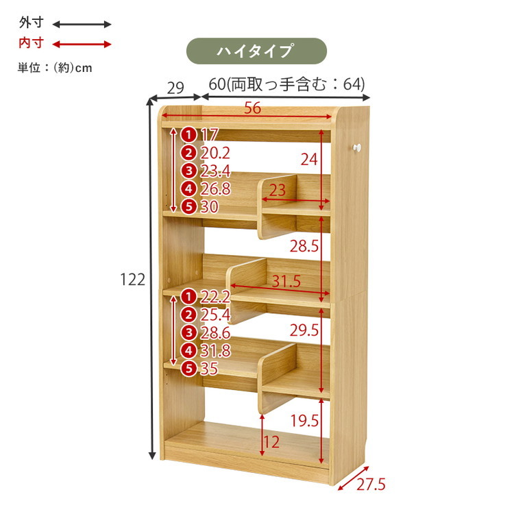 ■ハイタイプ:(約)幅60(両取っ手含む:64)×奥行29×高さ122cm