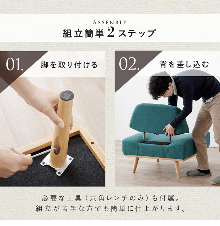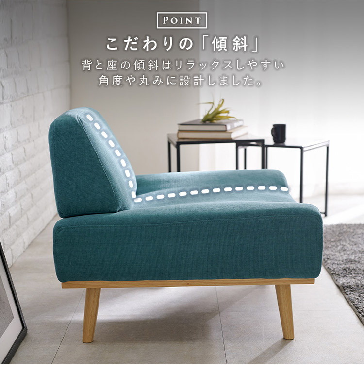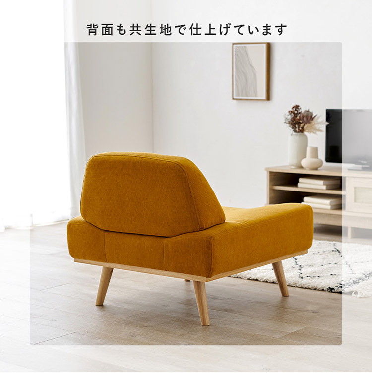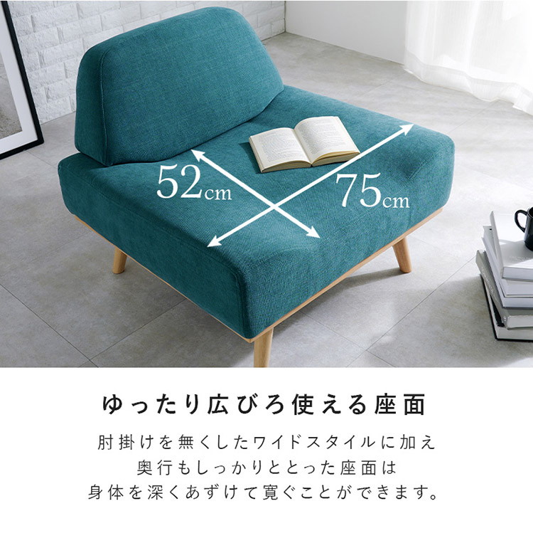 空間に圧迫感を与えないローデザインの一人掛けソファ。肘掛けを無くし、コンパクトでもゆったり広々座れます。