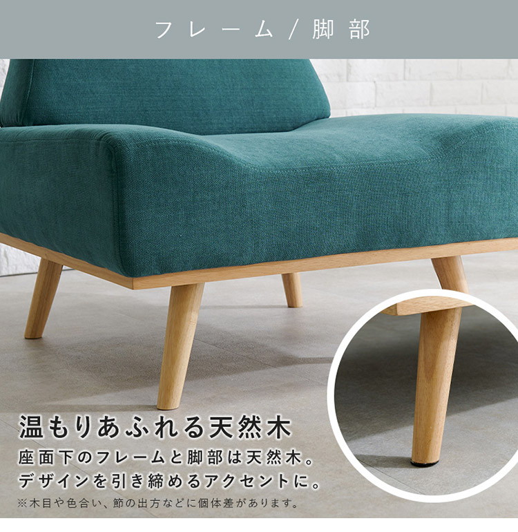 アームレスソファ ゆったり座面 幅75 奥行ワイド 脚付き 1人掛け 肘無し 1P 北欧 おしゃれ 天然木脚 ダークグレー